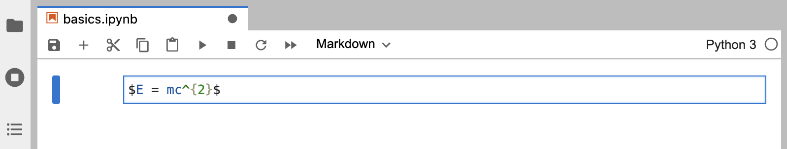 Rendered notebook with LaTeX equation shown for E equals mc squared.